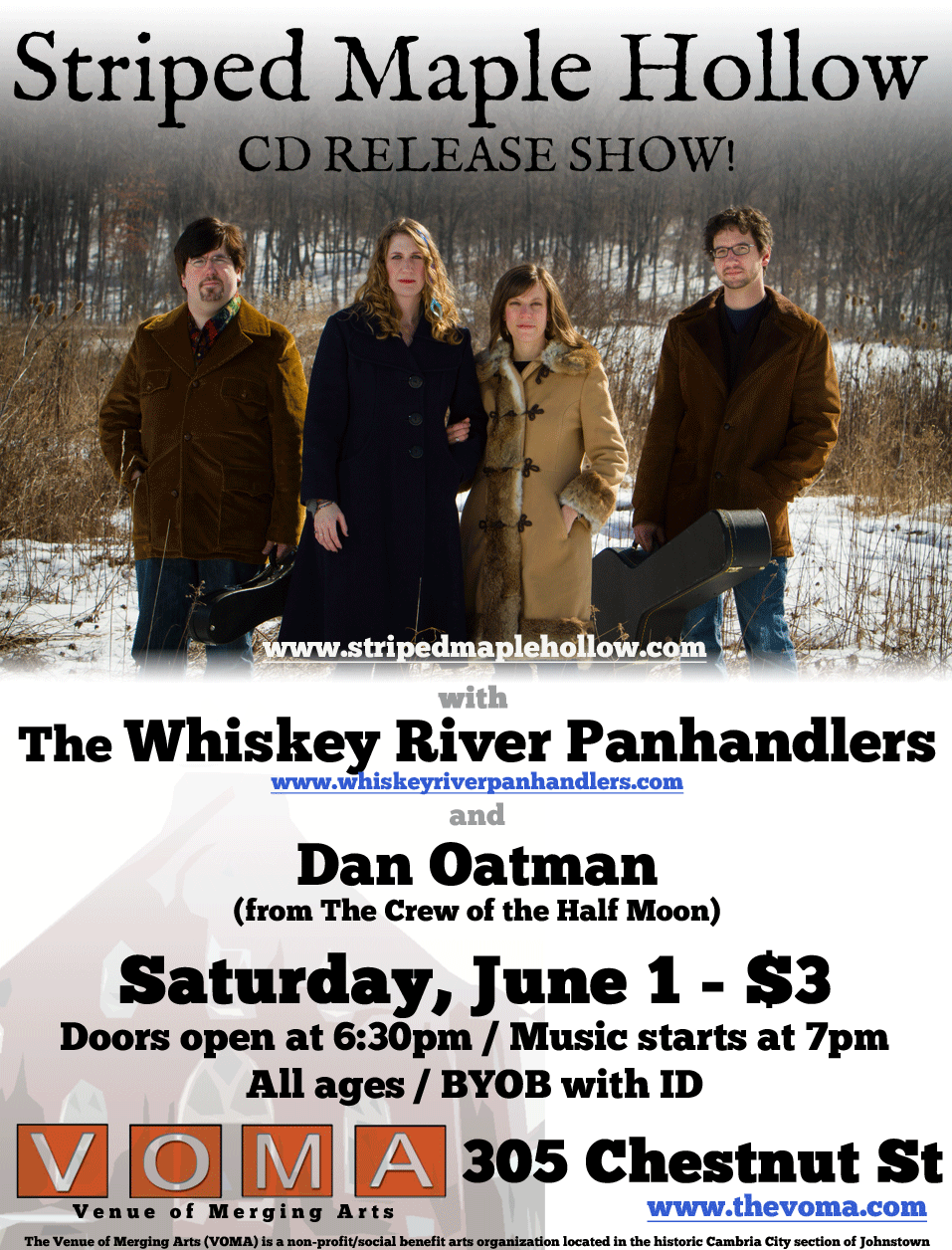 We'll be having a CD release show that night at VOMA, with The Whiskey River Panhandlers