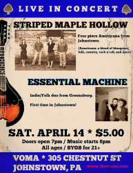 - August 30 - September 1: Ethnic Fest in Johnstown's Cambria City area. We'll be appearing on the VOMA stage during Ethnic Fest.