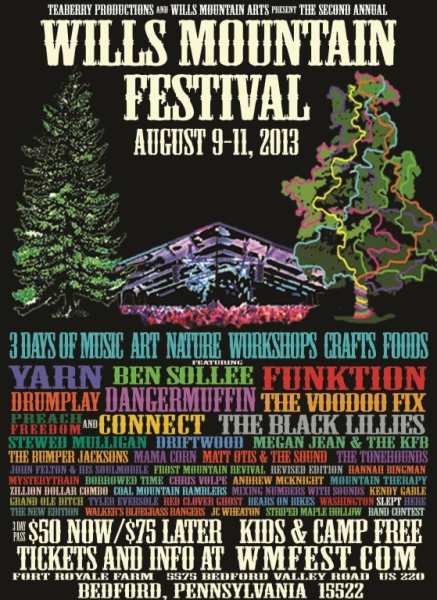 - August 9-11: Wills Mountain Festival, Bedford, PA.